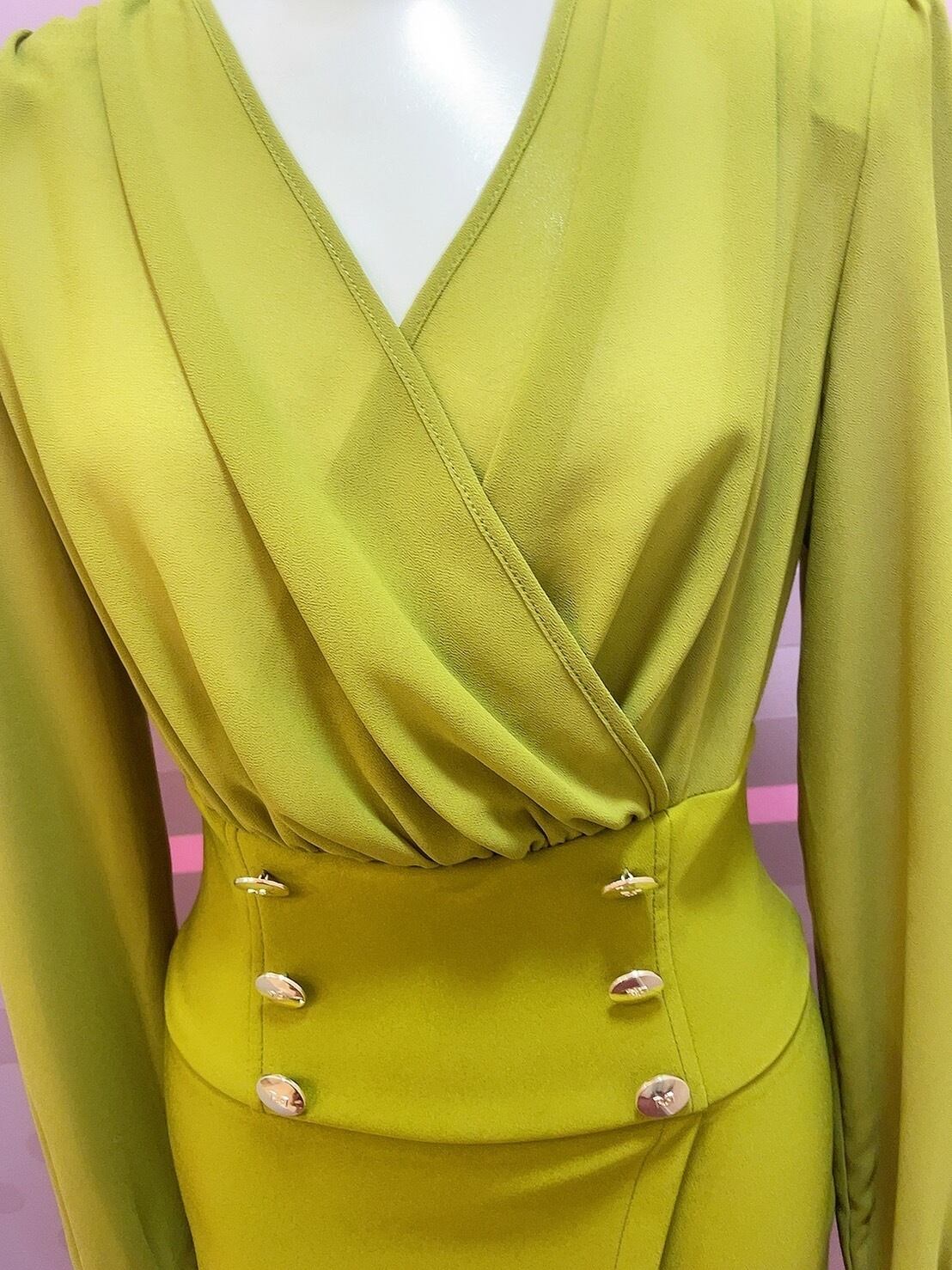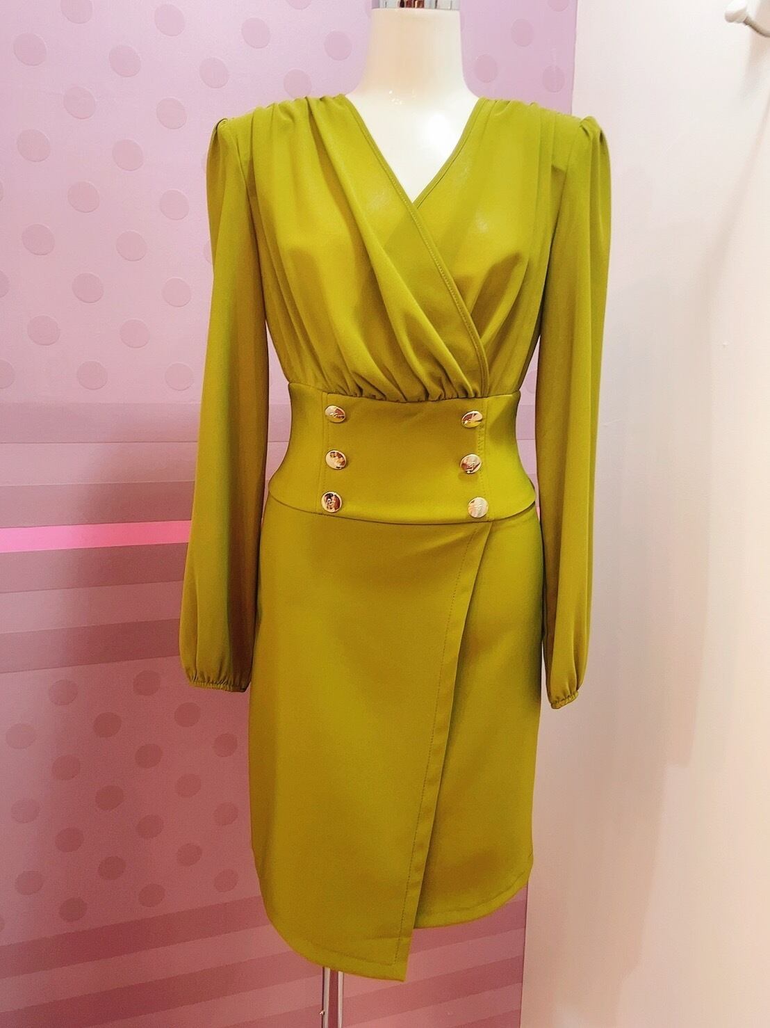 キレイなグリーンにGOLDボタンがお洒落