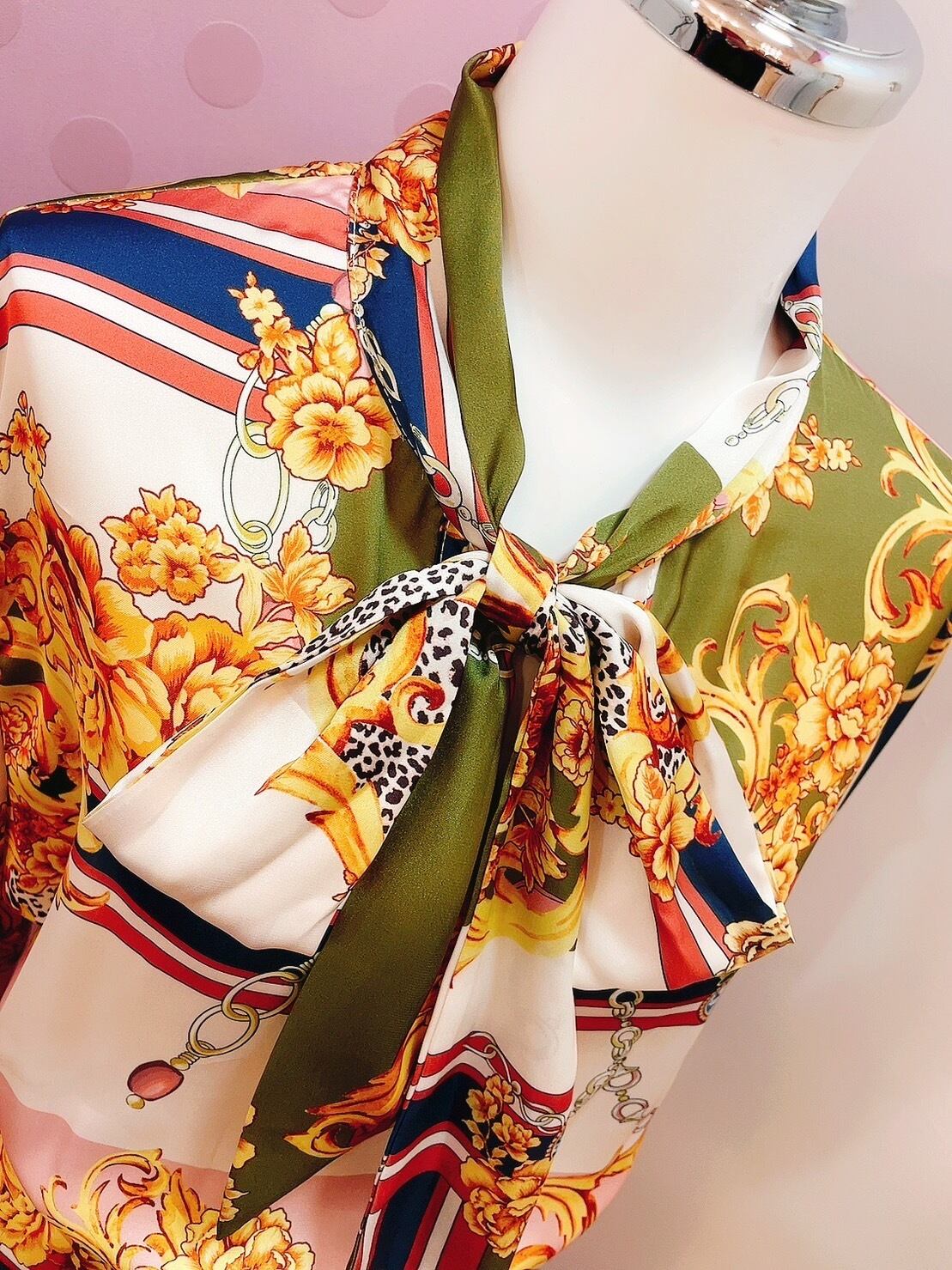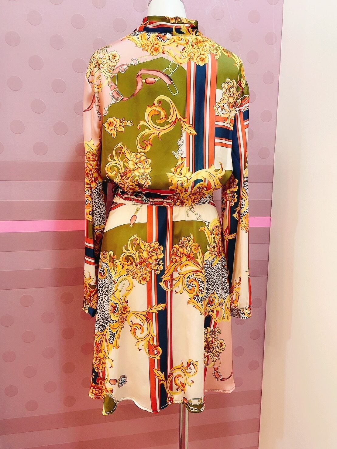ロココ柄ボウタイワンピース